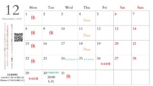 12月営業日程🍕🎄